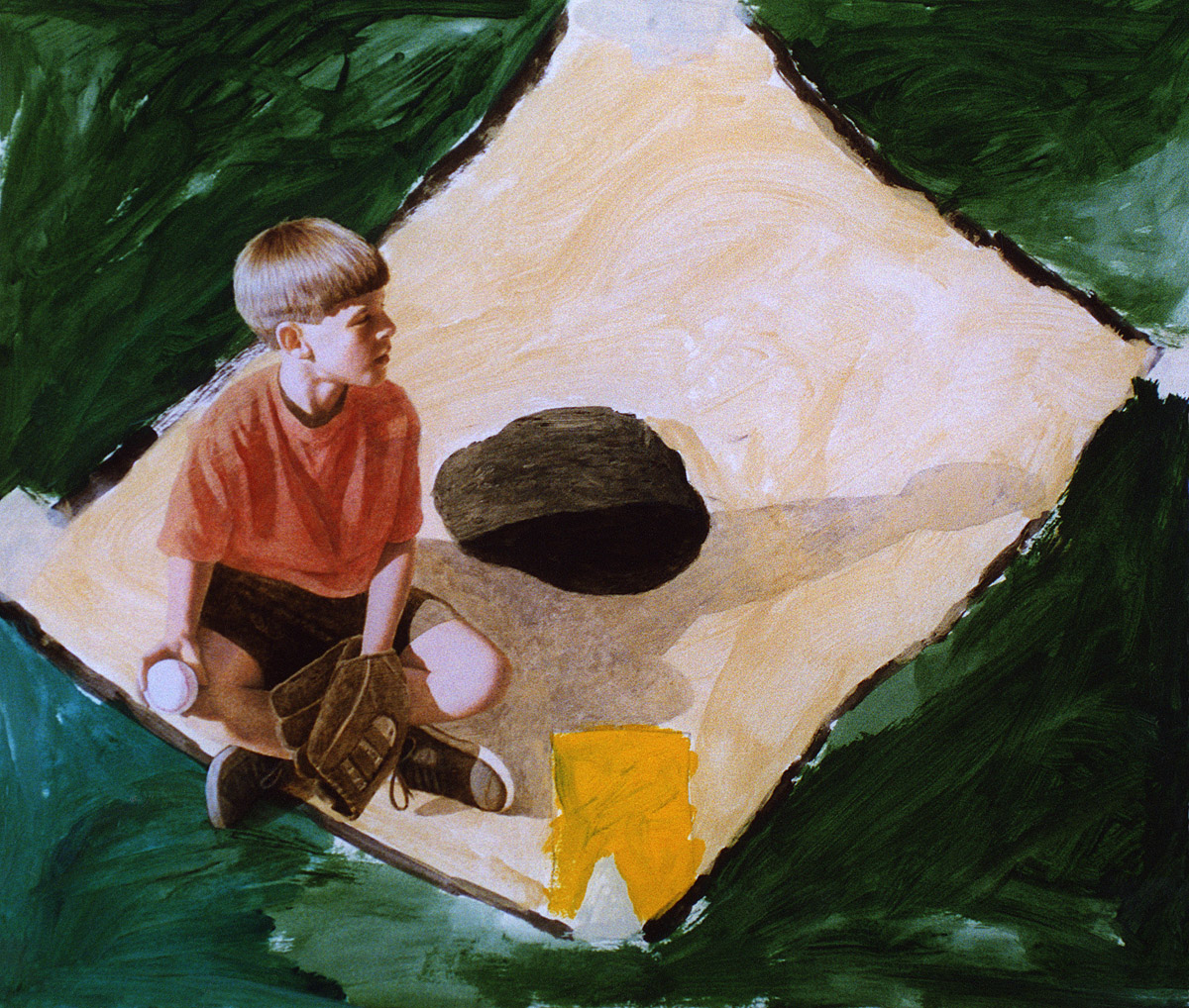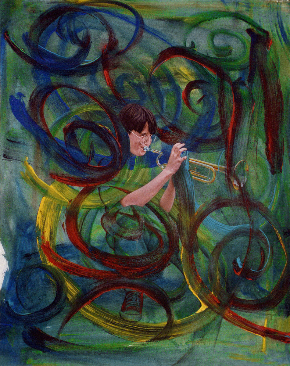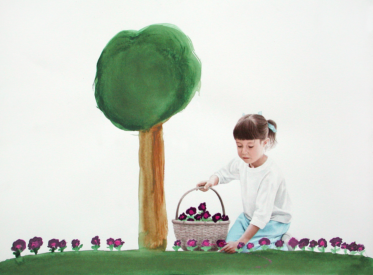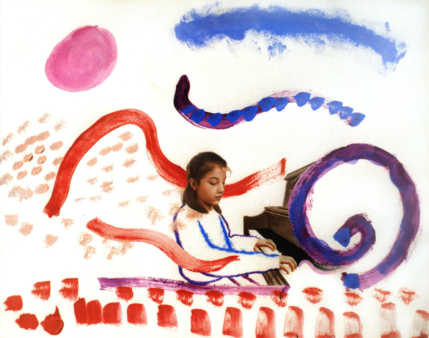 Children set the scene for their own portraits, encouraged to paint as they please. Along with the children, Morris imagines how they might appear within their paintings. He then takes photos, from which he hand-paints the portraits directly onto the children's paintings.
